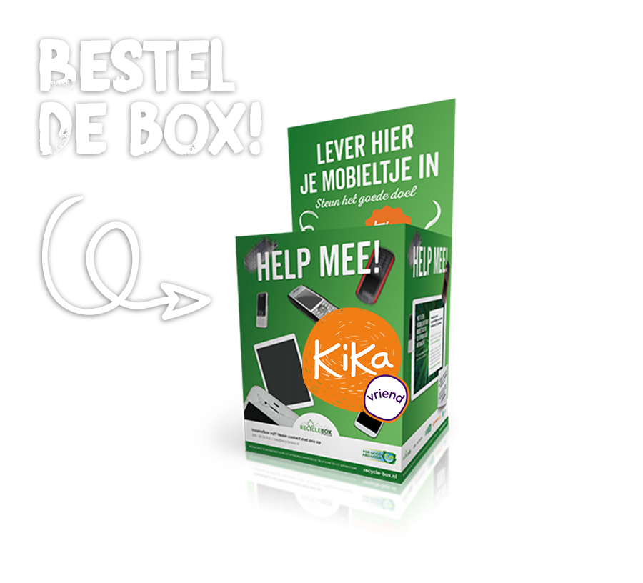 Stichting Recyclebox is partner van Stichting Kika, uiteraard is het ook mogelijk om de opbrengst aan een ander goed doel te doneren of aan uw eigen organisatie uit te betalen.